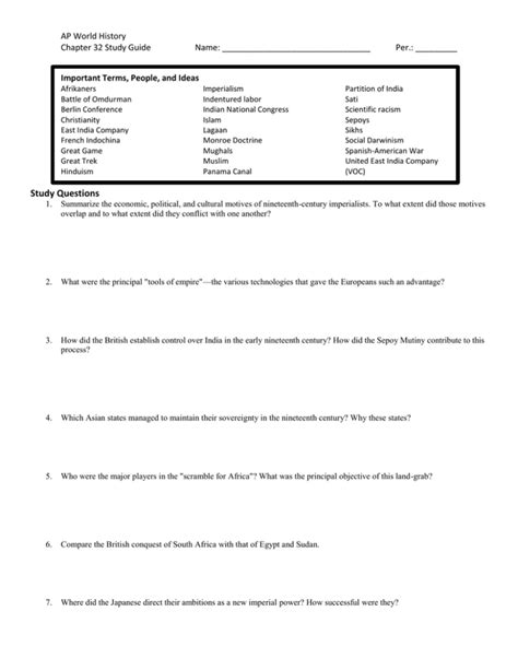 Read Online Ap World History Chapter 32 Study Guide Answers Kindle Editon